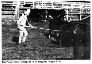 Air powered pole syringe it s the fastest new gun in the west says hank kleinwolterink sheldon iowa manufacturer of cow poke billed as the world s first air powered pole syringe for treating cattle or hogs without having to remove them from the pen.